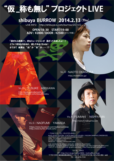 Vo,G : NAOTO OKAMURA (ロッキンチェアー、totalmusic)